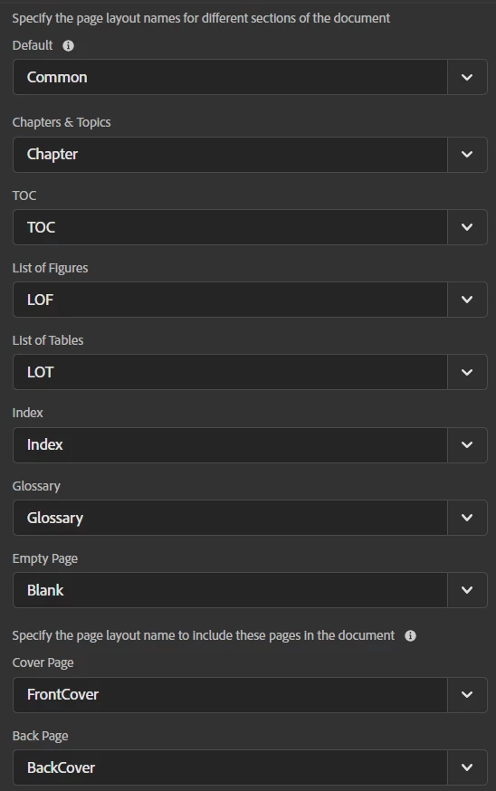 I have a topic with a proprietary warning in it that is the 2nd page of my PDF and is meant to print on the back of the cover when doing dual side printing. I'm in the US, so I print things letter size. I have ensured that every page out in my template has the same size settings, but the proprietary warning page always come out at A4 size in the PDF. I assume this is happening because it is a Front Matter page, but not one of the formally designated special ones and perhaps the Common layout isn't pointing at it correctly. I added text identifying all my page layouts and ran an output and that page doesn't appear to use any of the templates. Is there a way to fix this? I tried making a Topic Layout and pasting the code from the Common layout into that file and applying it to the topic, but it didn't work. I also dug around in the .plt and .tpl files in the template folder and examined them in VS Code outside of Robohelp and tried guessing what the xml for the front matter might be, but was unsurprisingly not successful.
