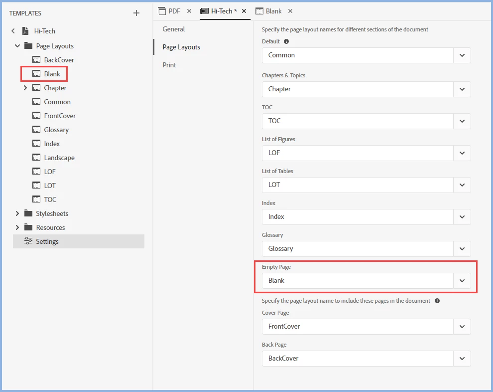 Page size bug with non Cover or TOC Front matter page and Empty Page issues PDF output