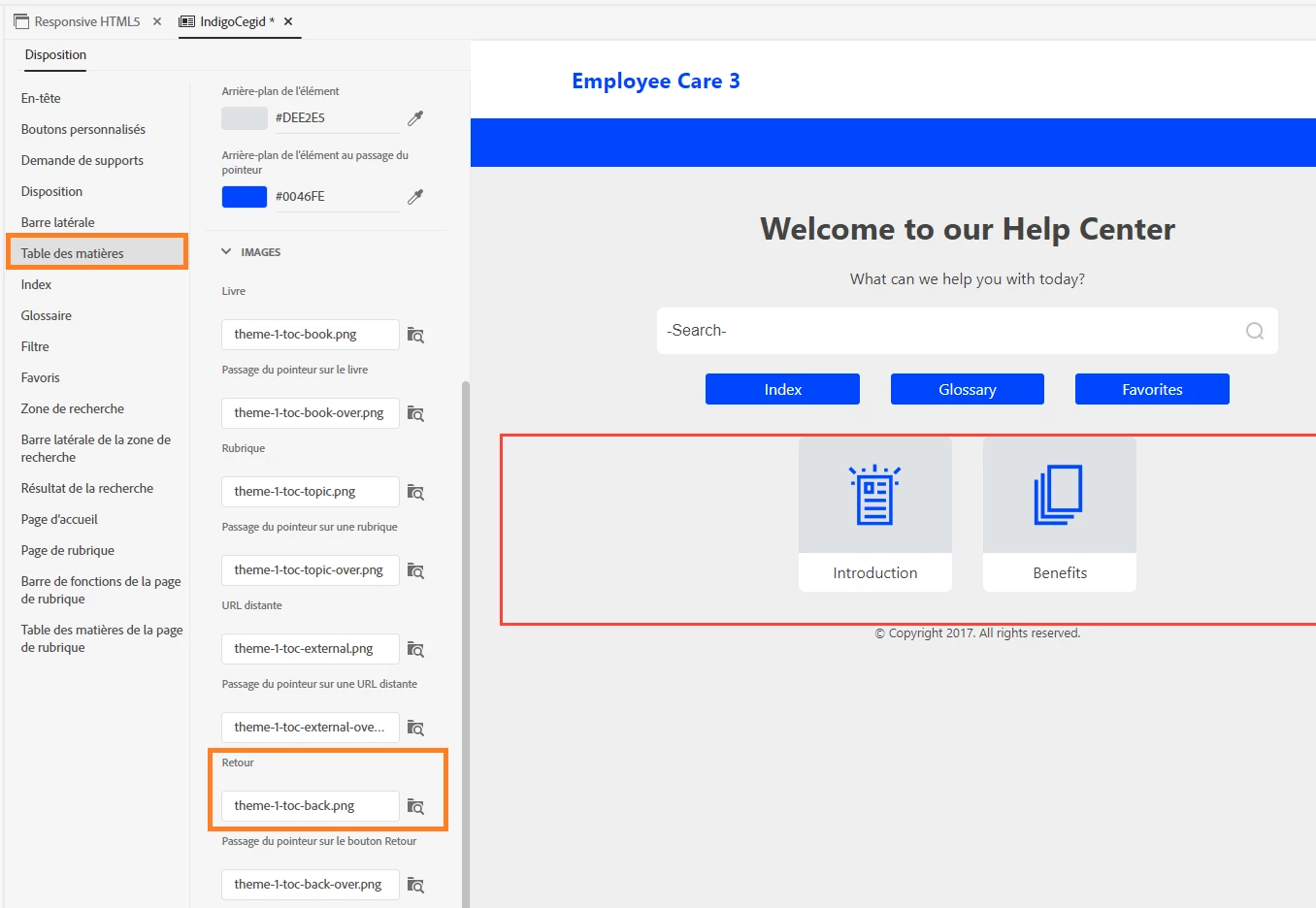 Maybe one of your developers can dig into that and figure out where the image is called and change it. Alternatively you can try Support. See https://helpx.adobe.com/contact/enterprise-support.other.html#robohelp for your Adobe Support options. The email link tcssup@adobe.com is recommended as it reaches a team dedicated to Technical Communication Suite products including RoboHelp.