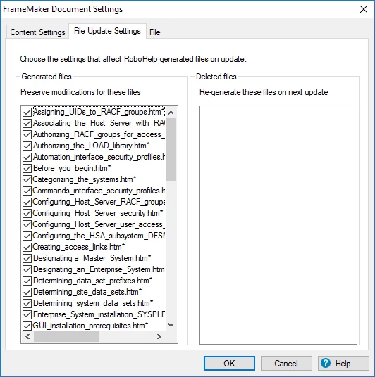 The problem is, whenever I update a file in RH (UPDDATE or UPDATE ALL), the "Preserve modifications for these files" checkboxes revert to all selected. I don't want to maintain any modifications. Is there a way to clear all check boxes on a global basis? It's really time consuming to clear them individually (I have 450 topics).