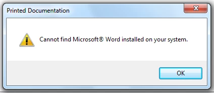 Printed Documentation Function Cannot Find Microsoft Word