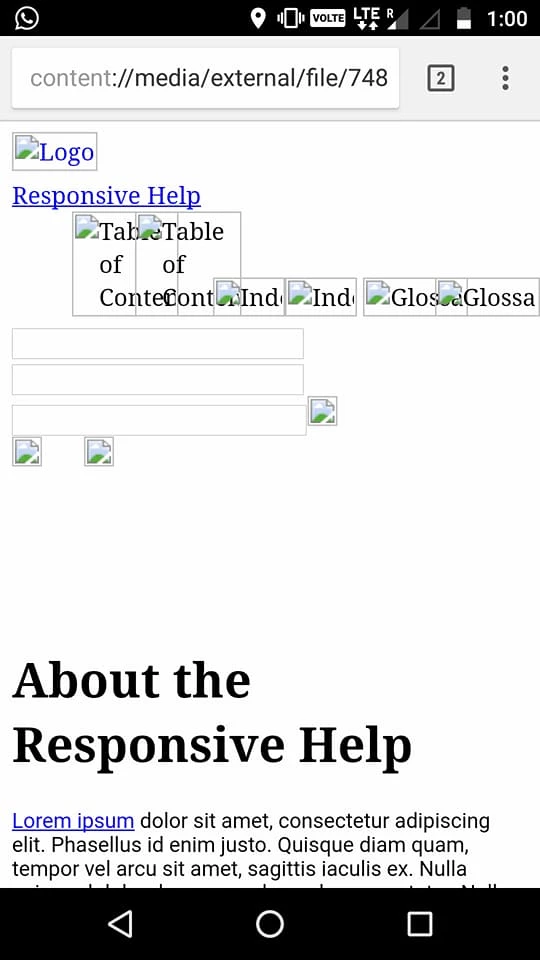 I have generated a responsive HTML 5 output through Robohelp 11. The output is absolutely fine and responsive when I view it from the desktop. But when I am viewing the output from my mobile, only the content is appearing, none of the images and icons are appearing, it doesn't seem to be responsive. Can you guys please suggest a solution?