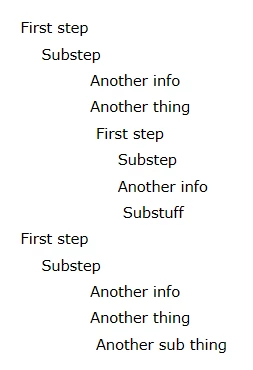 So, with each line being a new line and different indentation level, here is how the list looks in Robohelp (on the left) and then how it comes out in the browser (on the right). I have tried Chrome and IE and they come out the same.