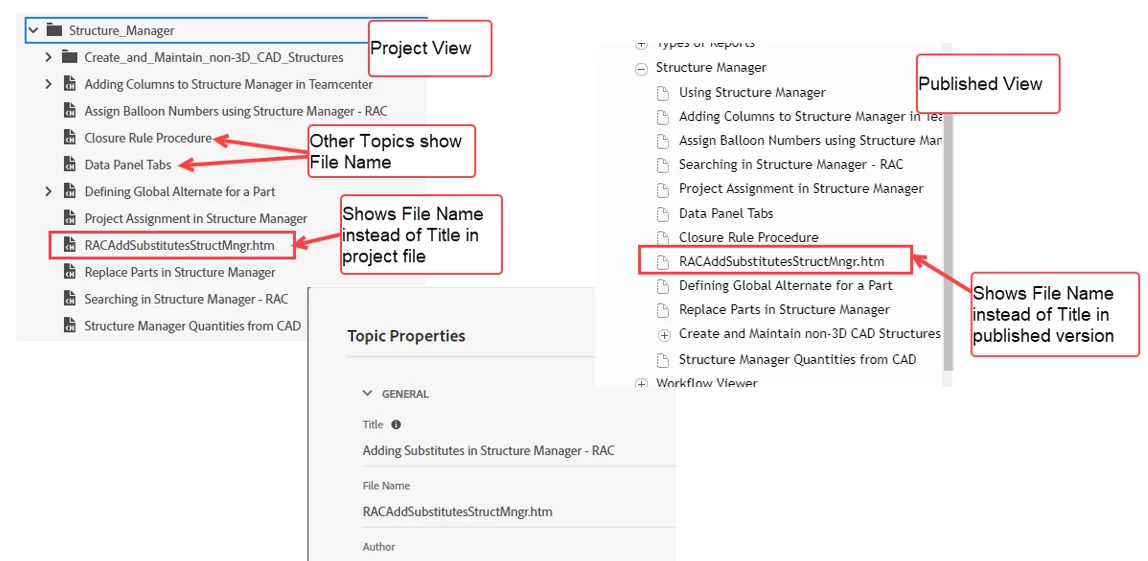 Issue: In the published ToC, the file name appears instead of the title.