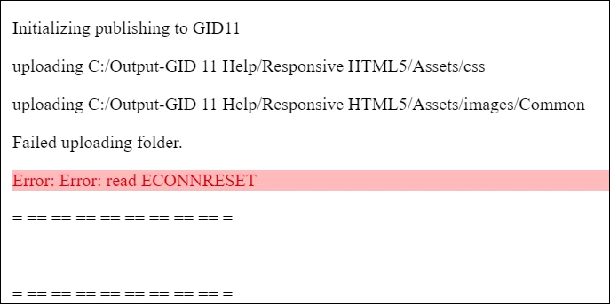 Publishing error using Robohelp 2019 | Responsive HTML5 output to FTP