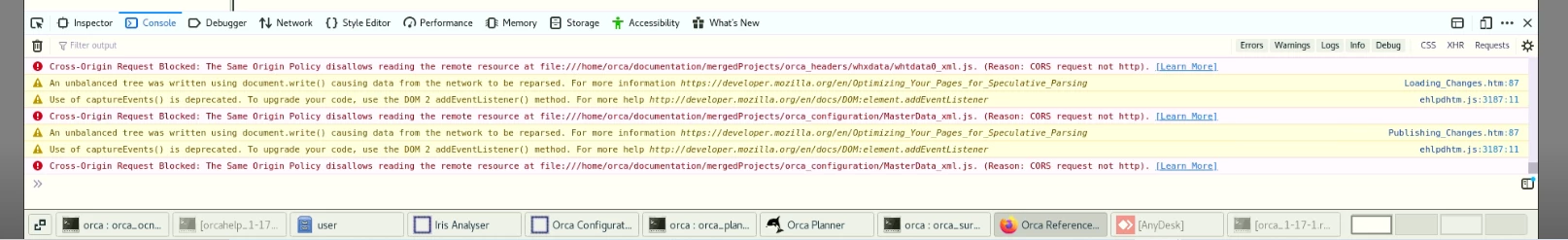 For years this has worked satisfactorily, but more recently we have been encountering problems which are preventing the help from working correctly. Specifcally, most of these issues seem to be linked to browsers blocking cross-origin requests (see attached image). This manifests itself as menu links not working, searches returning zero results, and books failing to display linked topics.