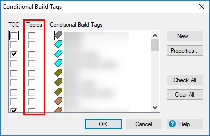 Purpose of "Topics" checkboxes in Conditional Build Tags dialog box?