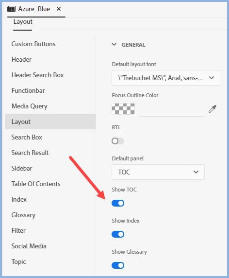 Can I have an index page with no TOC and TOC for the other pages using Azure blue skin?