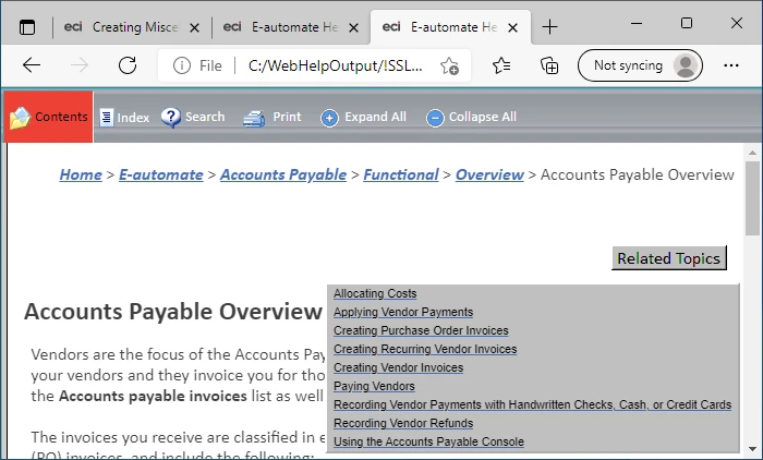 Using WebHelp generated with RH 2019 Classic, our Related Topics were accessible via a button, and the list looked liked this: