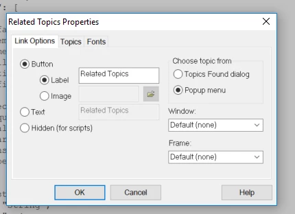 I am testing the use of Related Topics. I'm using RH2017 with the Azure Layout. I added two Related Topics for testing purposes, one with a pop-up menu and one with a Topics Found Dialog.