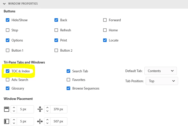 Does anybody know if it's possible to remove only the "Index"-button in Microsoft HTML Help in Robohelp 2019?