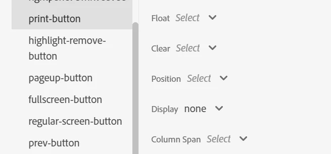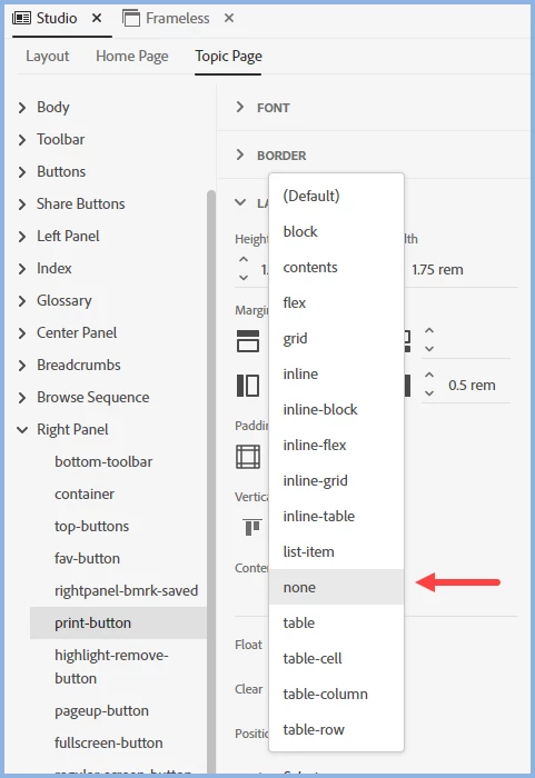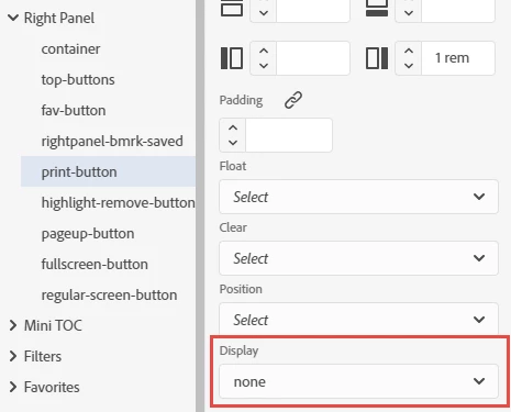 I'm trying to remove the printer and highlight icons from the SKIN- Studio Robohelp 2020 --