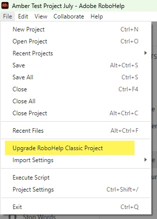 Would you happen to know if I use the Upgrade Robohelp Classic Project option in RH2022 is there a way to save a copy in Classic as well? I have selected this and the project seems to pull over to RH2022 from Classic 2019 (changing the file type from .xpj to .rhjp) but I do not see a way to still access the project in Classic. The concern is to upgrade a large project, run into issues and lose it. We have projects that are ongoing and have been worked on for several years.