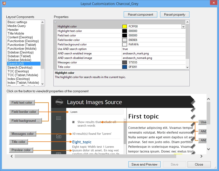 Responsive Layout "Show results that include all search words" Text Colour