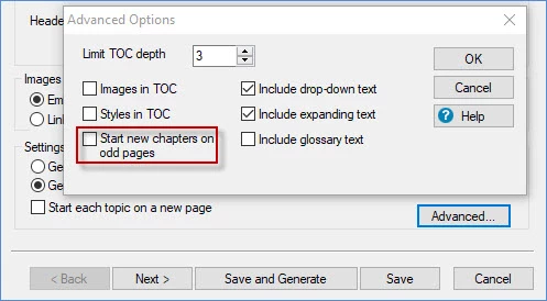 Expected Results: There should be no blank page after my cover page, TOC, and no blank pages between chapters.