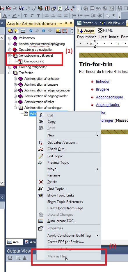 Recently upgraded from RH9 to RH11. I now find the functionality of marking or unmarking a TOC as new is unavailable in my RH11. Looked high and low to turn it back on.