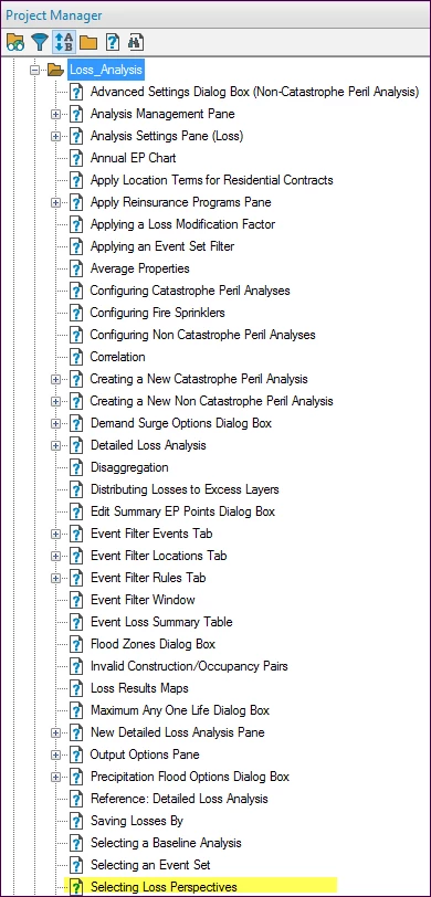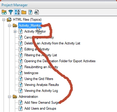 - When we scroll to the topic, we can no longer see the folder name or any folders that precede the current folder. For example, I've selected file "Using ..." in the Loss Analysis folder and can no longer see the Administration folder in the Project Manager tree.