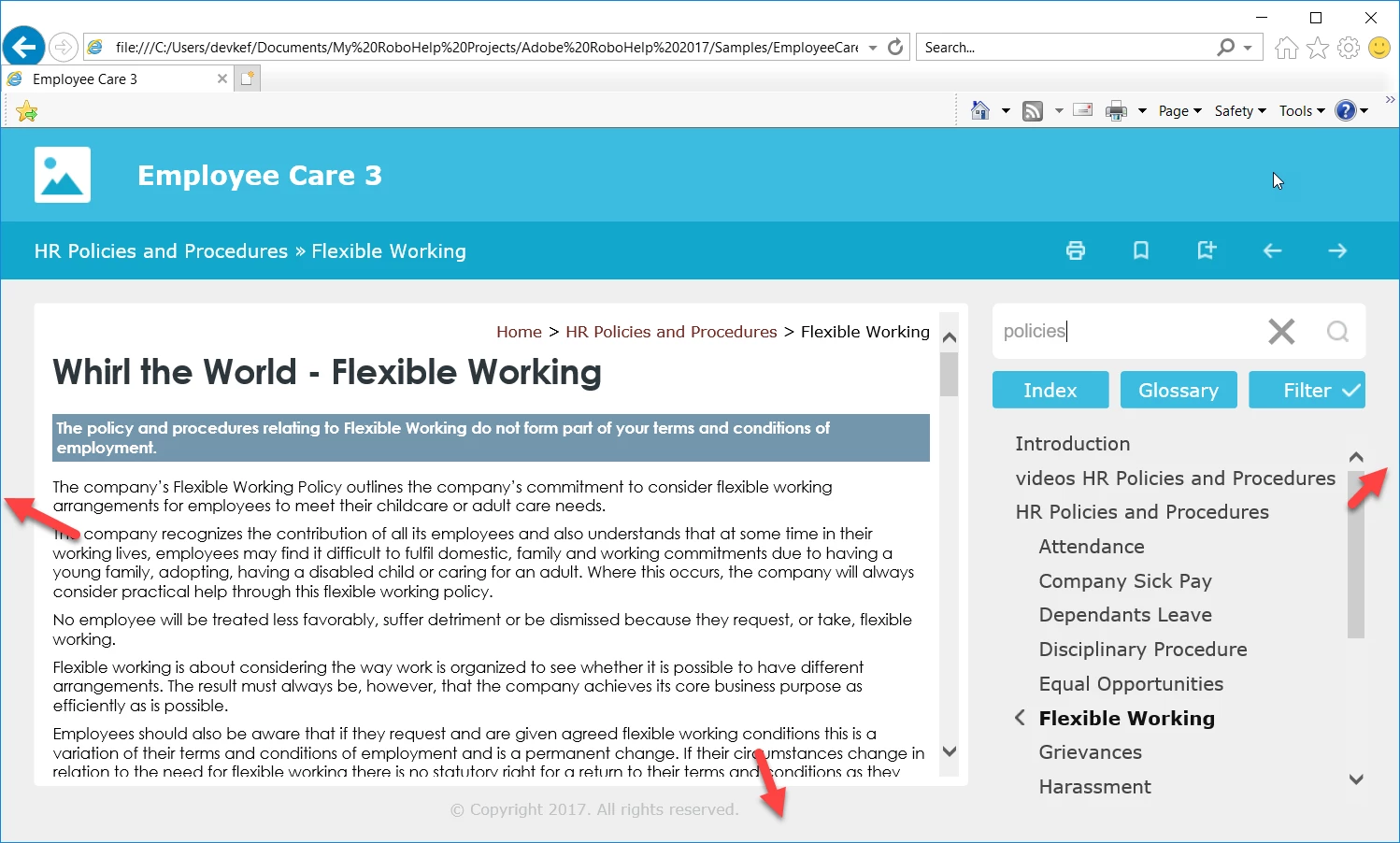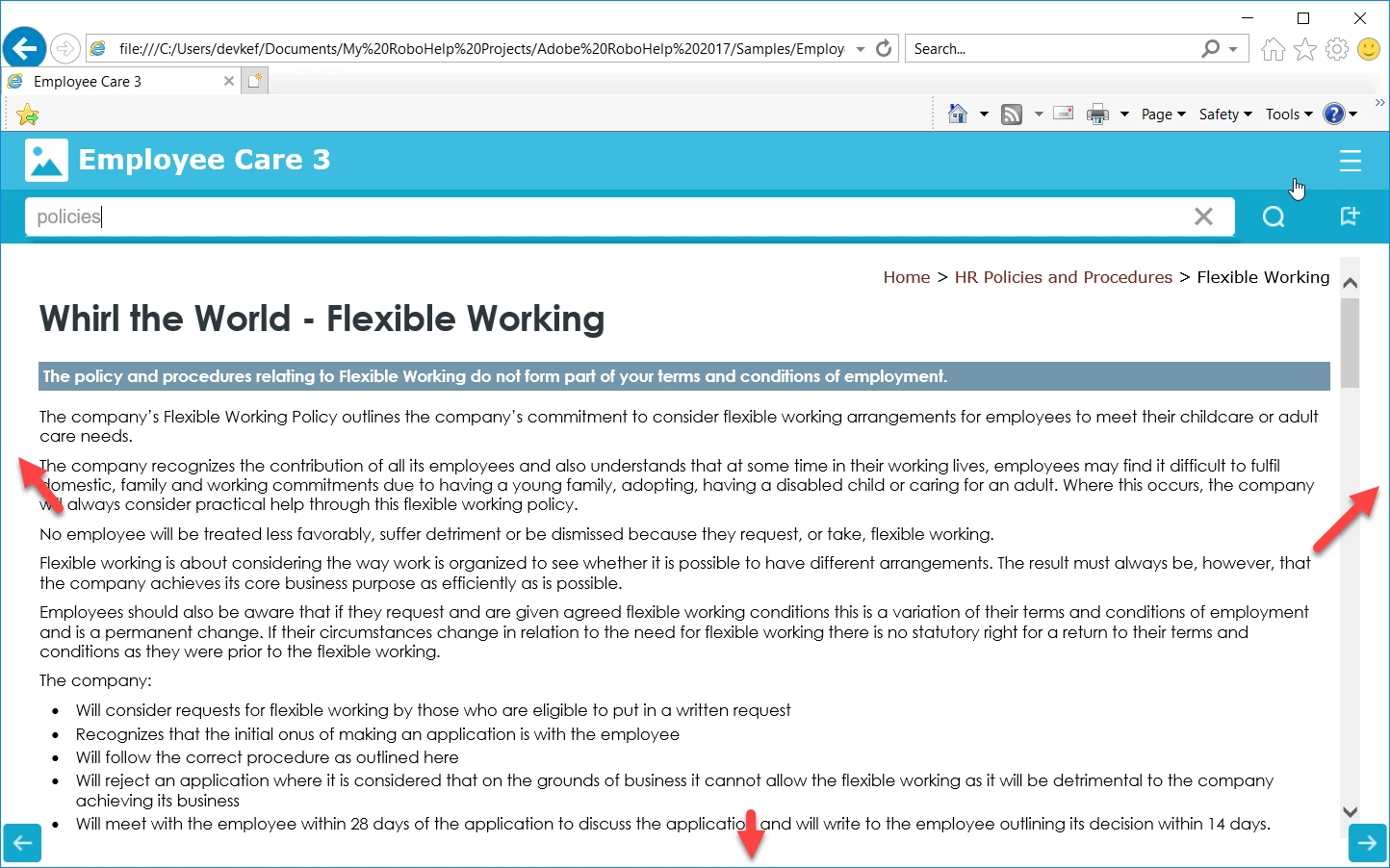 Example blank space using RH sample project, output viewed on larger laptop screen with browser maximized: