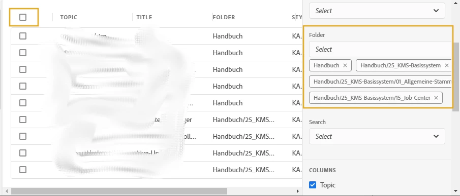 Also, you can for example filter for the folders you want to edit and only show the topics in these folders.