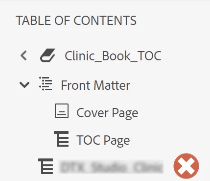 - In Content, set Table of Content to book TOC.