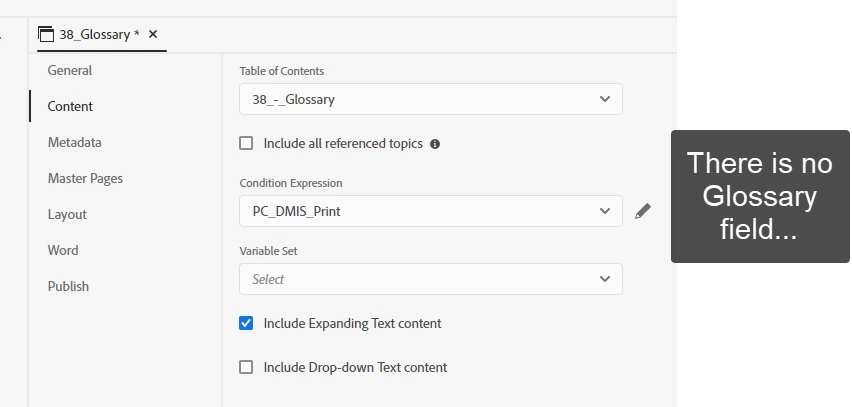 How do I add a glossary into my printed output? There's something missing or a disconnect in information: