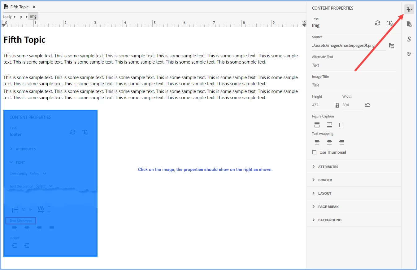 I should have added that I used to click on an image in the edit panel to see its properties.  Now, I cannot do that.  I see Image Properties when I click the image on the Contents but not in the topic.