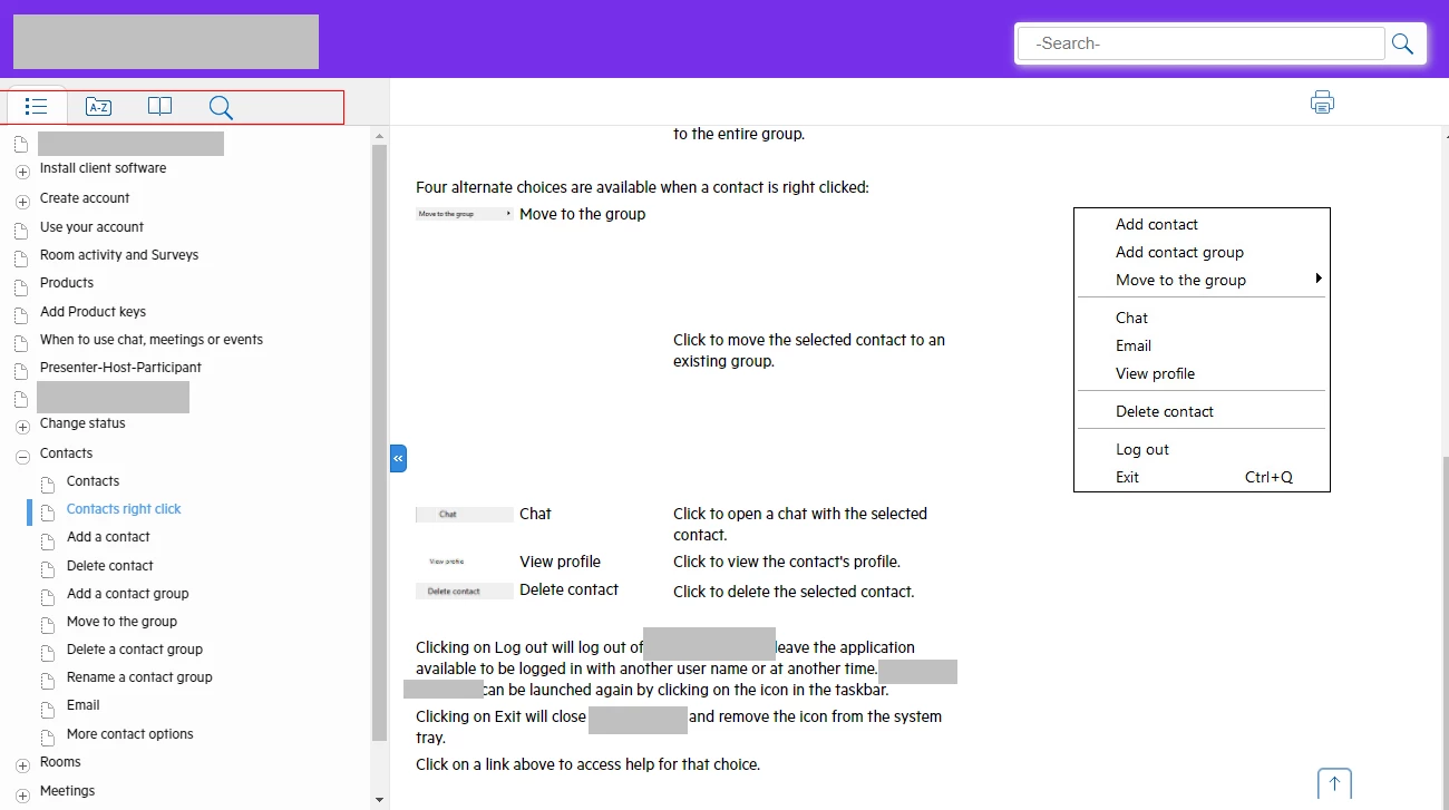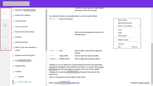 Note that now the TOC, index and glossary tabs are now at the top. In addition, the visual presentation of the scroll bar is different, it's now significantly thinner than the first example.