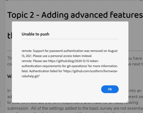 I have generated a personal access token through the GitHub website, but I am unsure where to enter it as there is no pop-up window prompting me to. I have read the article ( https://github.blog/2020-12-15-token-authentication-requirements-for-git-operations/ ) provided to me in the pop-up in the screenshot above, but still struggling to piece together how to get around this.