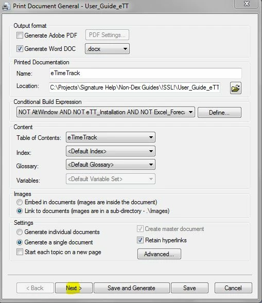 I just finished a major update and have about 70 topics (out of approx. 900) that have to go to SMEs for review. The 70 mainly have tables of GUI field names and descriptions and the SME will have to provide any missing/outdated descriptions. So I want to generate an output, preferably Word, that the SME can review and update as needed. But even after I condition out the books that I don't need to send, the generated Word file is missing great chunks of material.