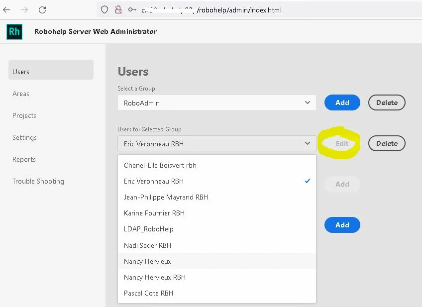 RH server Web Administrator - Need to manage users