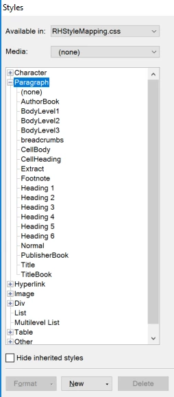 The second issue is that I do not see the font/setting that I modified in the RHstylesheet mapping applied to the content. It took me some time to add specific modifications under Paragraph and Table. After I apply and say OK, I do not see the the setting applied to the content?