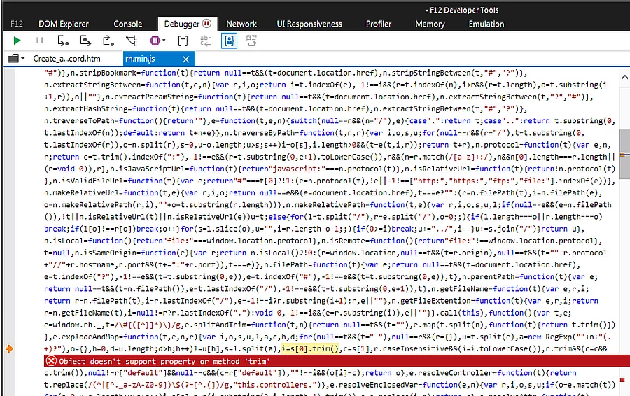 I'm creating a Responsive HTML5 user guide for my company's web-based application. When we attempt to access the user guide through the application in MSIE (version 11.0.9600 - update version 11.0.20), the user guide I created in RoboHelp (version 11.0.4.291) only displays the content I wrote and not the TOC, the Sidebar, the Function bar, or any other layout features. It just simply displays my written content as a webpage without any layout or navigation features at all.