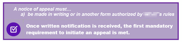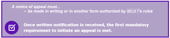 <li>be made in writing or another form authorized by the tribunal's rules</li>
