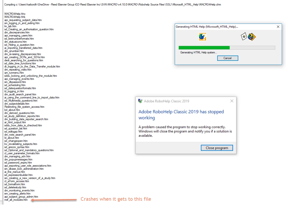 RH2019 Classic crashes during CHM generation