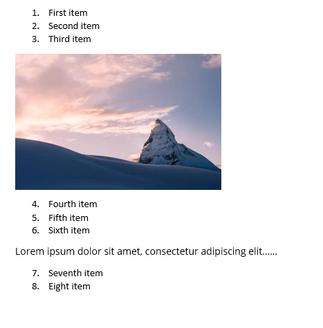 RH 2019 does not continue the list number if an image is inserted between two numbered lists.