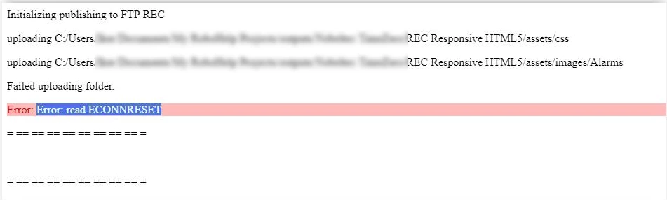 When Initalizing the publishing to ftp it failed uploading a picture folder and I obtain the following error : Error read ECONNRESET (failed on a specific picture's folder)