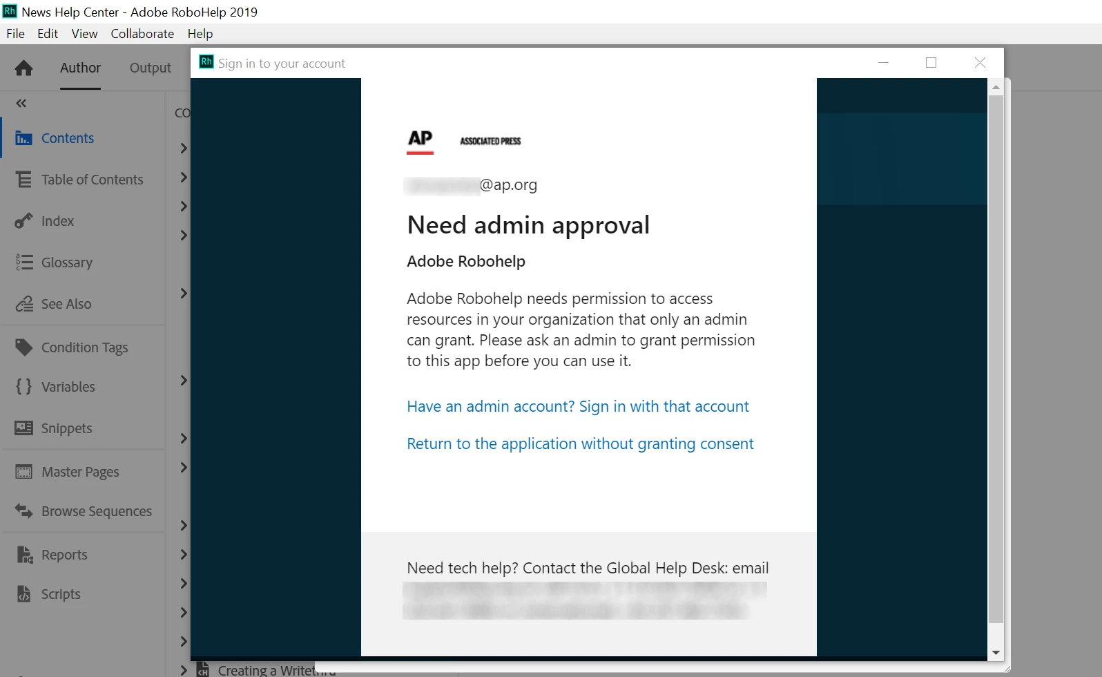 - We consulted with the RH2019 online help doc (https://helpx.adobe.com/robohelp/user-guide.html/robohelp/using/sharepoint.ug.html) and determined that we first need to create a Connection Profile to establish our connection to SharePoint.