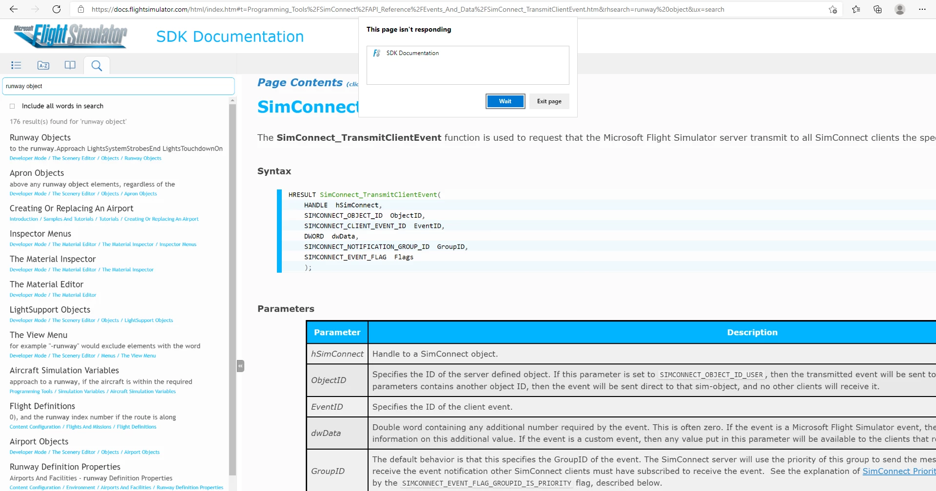 This seems to happen on all browsers (reported on Edge, Chrome and Firefox), and is completly random. For example, if I can for "Runway Objects" on chrome and it will freeze the first two times, but then work suddenly, while it won't freeze on any of the other browsers (and it'll never freeze on Chrome for that search term again!). This makes it impossible to reproduce consistently, as you never know when a search term will cause this freezing. It's also impossible to debug, as the browser dev tools seem to be useless in this situation. If you try to open them after it happens then they either can't be opened or show nothing, and if they happen to be open when it does happen, they still show nothing!
