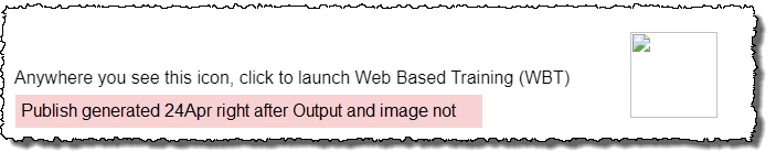 I changed the name of the 'WBT icon.png' file to 'WBTIcon.png'.  The image still appears in the Output but NOT in the Publish version.