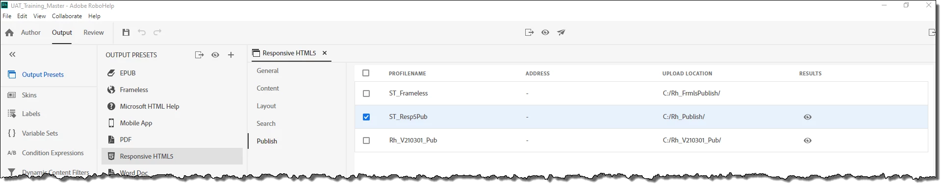 I am using Rh2020.4.173 version. I am using Responsive HTML5 output and wanted to create a new publish ProfileName. The cogwheel settings icon is missing (see image).