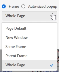 I have an bonus question: which settings do i need to use for the ‘display in’ dialog in the link to window (Frame I suppose, and then: ...)