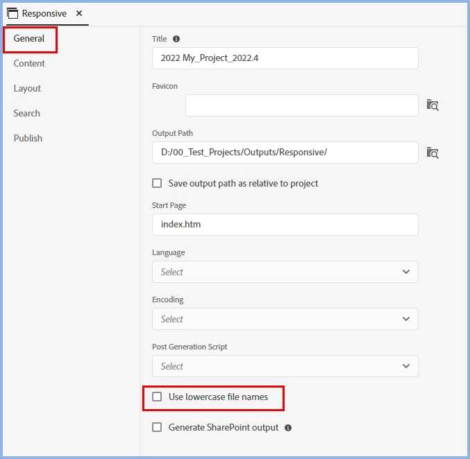 We are using the HTML5 preset, and cannot find any field or control that would change the path from upper to lower case. Is there anything we can do to stop this from happening? We have numerous broken links throughout the help.
