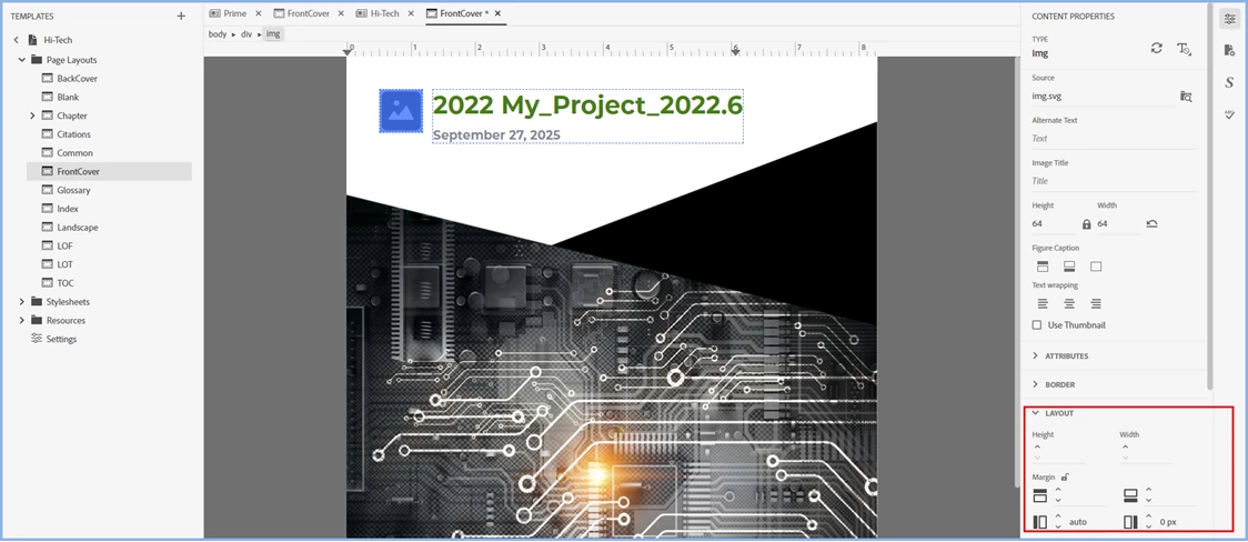 I'm trying to insert a logo on the Front Cover of the PDF version of our user guide, but would like it in the upper-right corner, a line or two above the title, but what I keep getting is this: