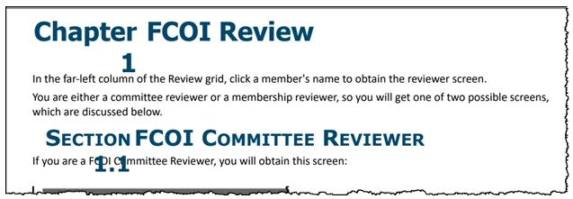 I don't need "Chapter 1" or "Section 1.1"; what I want is a topic heading of "FCOI Review" and subheading "FCOI Committee Reviewer"