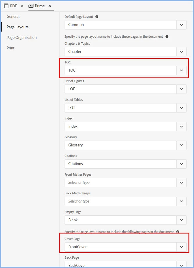 I'm trying to create a PDF document of a project in RH2022 that is supposed to have a cover page and table of contents. However, I keep getting this: