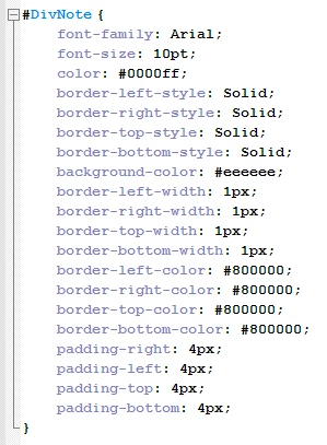 The CSS id "DivNote" is defined: