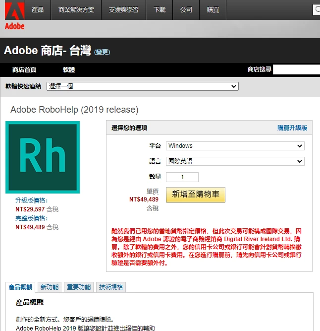 請問在  Adobe 商店購買 RoboHelp 是永久使用授權?
