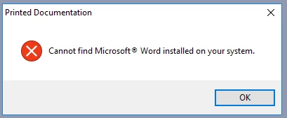 Now when attempting to generate printed documentation, I receive the following error message: