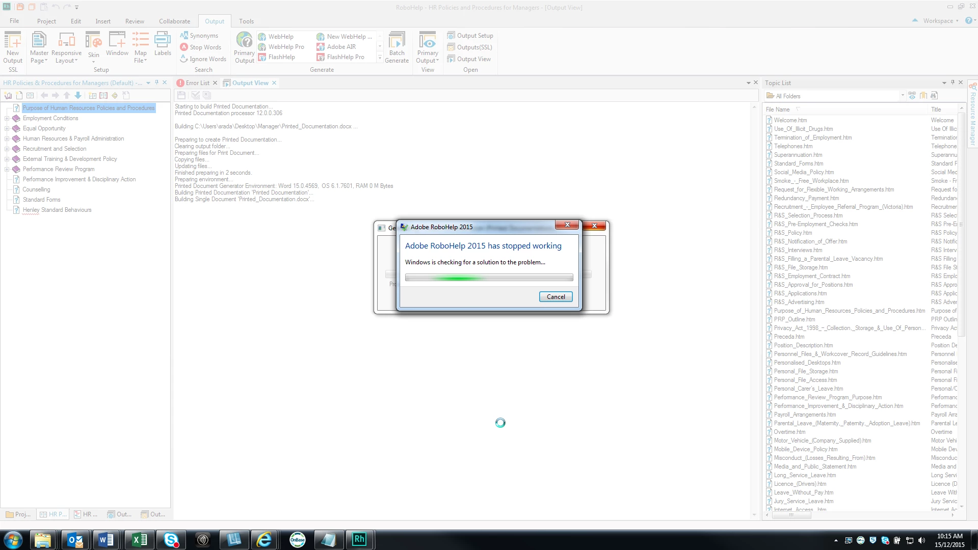 Robohelp 2015 Crashes when exporting Printed Documentation
