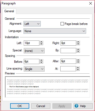 This allows the text to line up with the text from a Bullet List or Number List (that I also created). (Red line added for effect only)